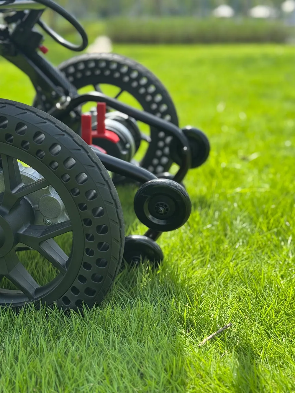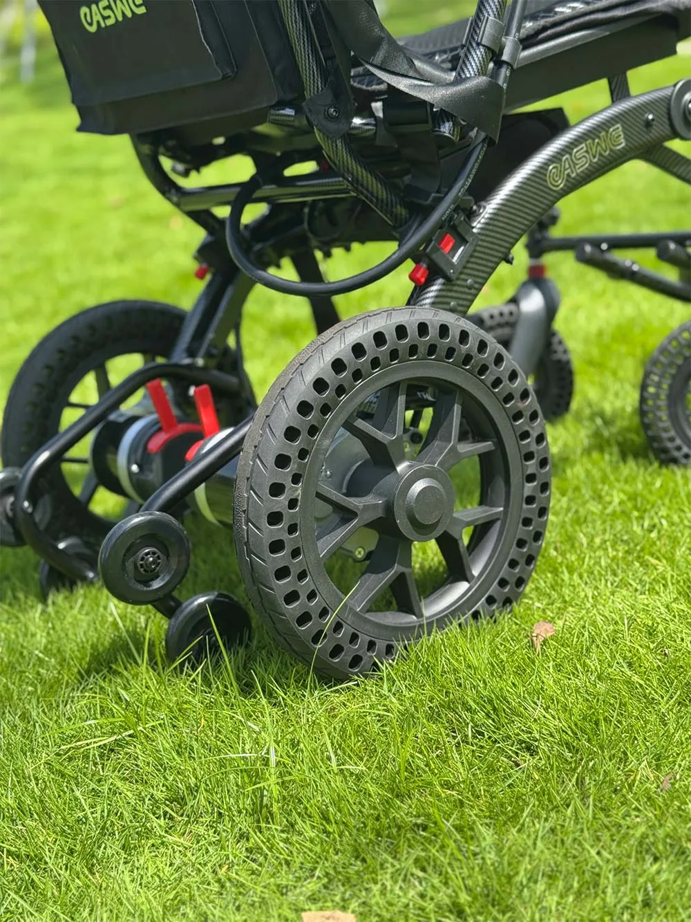 Our electric wheelchairs have honeycomb tires on both the front and rear wheels, making them suitable for both indoor and outdoor use.